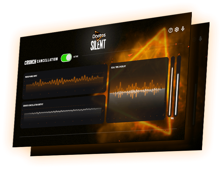 Shhhh. Il software Crunch Cancellation silenzia l'inconfondibile crunch delle Doritos. Così puoi gustare le Doritos senza distrarre il tuo team o la chat vocale.